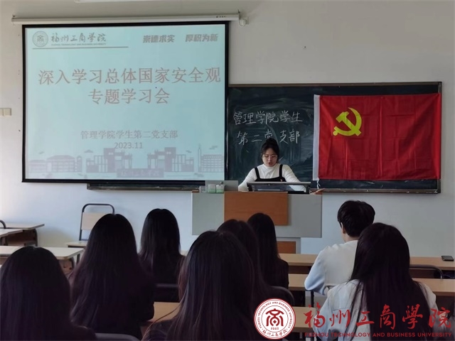 为深入学习贯彻习近平新时代中国特色社会主义思想,将总体国家安全观不断引向深入,引导学生党员认真学习领会总体国家安全观的重大意义、核心要义、精神实质、丰富内涵、实践要求,不断深化认识、全面理解把握总体国家安全观的精神内涵。11月23日,yl6776永利集团学生第二党支部在教学楼A502召开深入学习总体国家安全观重要论述专题会议。此次会议由支部书记李灵娇主持,全体学生党员参会。