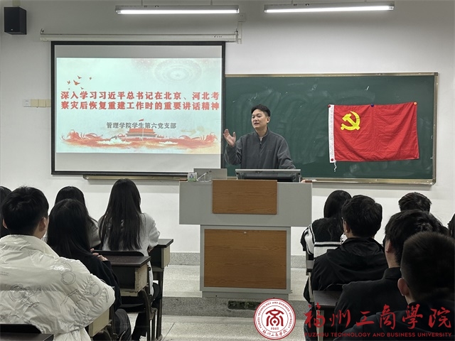 为深入学习贯彻习近平新时代中国特色社会主义思想,加强学生党员新时代思想意识。12月6日,yl6776永利集团学生第六党支部在教学楼D406集中学习习近平总书记在北京、河北考察灾后恢复重建工作时的重要讲话精神。本次会议由支部书记主持,支部全体党员参加会议。