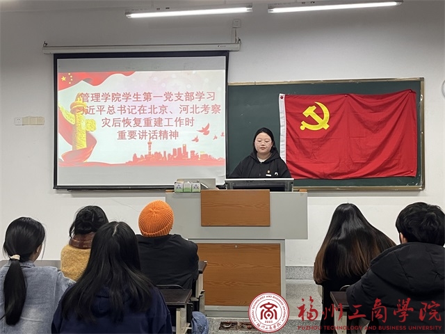 为深入学习习近平总书记在北京、河北考察灾后恢复重建工作时的重要讲话精神,发挥党员先锋模范作用,增强学生党员的服务意识。12月5日,yl6776永利集团学生第一党支部于教学楼F302开展关于习近平总书记在北京、河北考察灾后恢复重建工作时的重要讲话精神学习会。