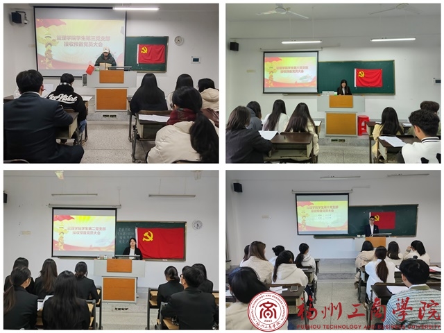 会议伊始,各学生党支部书记介绍大会主要内容和具体流程。其次,发展对象逐一向大会说明自身对党的认识、入党动机以及在大学期间的表现。并纷纷表示,今后会以党员的标准严格要求自己,以实际行动表明自己入党的决心。之后,各学生党支部书记及支部支委从思想觉悟、学习成绩、日常表现等方面对发展对象在入党积极分子考察期的情况进行介绍评价,并对其能否加入党组织表明态度。过后,在入党介绍人发表意见、与会党员深入讨论后,全体正式党员关于是否同意该同志加入党组织进行了无记名投票方式表决。最后,全体中共预备党员面对党旗宣誓,整个宣誓过程庄严而凝重。