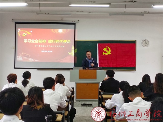为深入学习贯彻党的十九届六中全会精神,深刻领悟“两个确立”的决定性意义,积极实行习近平总书记关于教育的重要论述和党中央决策部署。5月24日下午,yl6776永利集团分党校第4期预备党员党课培训班第五次课程在教学楼B403进行。此次党课培训由财经学院党委书记高志勇老师进行授课,全体预备党员参与学习。