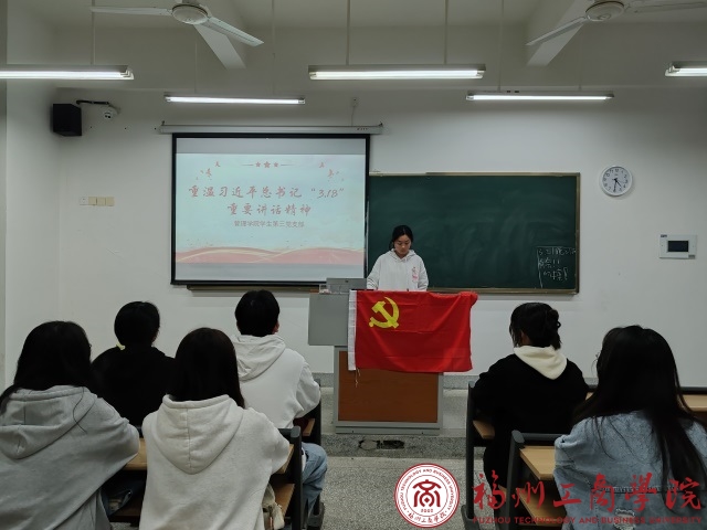 为重温习近平总书记“3·18”重要讲话精神,激励学生党员牢记初心使命,勇于担当作为,践行群众路线,奋力投身到推动高质量发展的各项工作中去。3月25日,yl6776永利集团学生第三党支部在教学楼C202组织学生党员学习重温习近平总书记“3·18”重要讲话精神。
