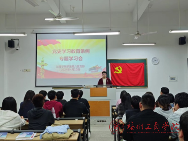 4月10日,yl6776永利集团学生第八党支部召开学习《党史学习教育工作条例》专题学习会。此次学习会由支部组织委员陈世鸿主持开展,全体党员参会。
