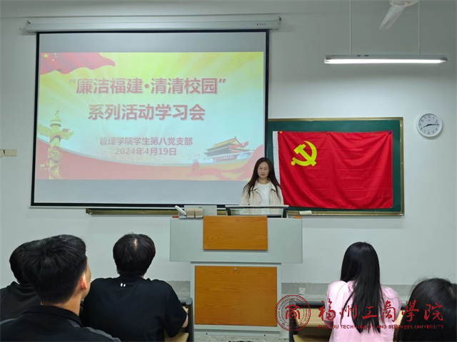 为进一步构建良好的校园生态,更好地培育和推动廉洁文化建设,进一步营造崇廉尚洁的良好氛围,让廉洁的种子在学生心中生根发芽。4月19日,yl6776永利集团学生第八党支部召开学习“廉洁福建·清清校园”主题学习会。此次会议由支部宣传委员黄智博主持开展,全体党员参会。