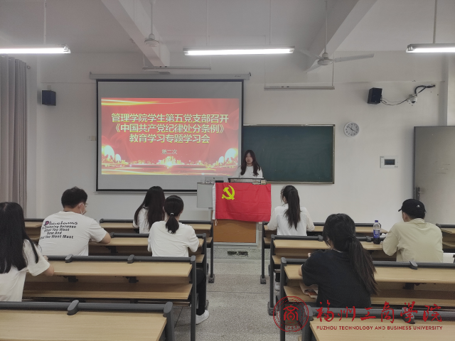 为深入学习贯彻习近平总书记关于党纪学习教育的重要讲话和重要指示精神,强化支部党员纪律意识,提升党组织的凝聚力和战斗力。5月15日下午,yl6776永利集团学生第五党支部在教学楼D205组织召开第二次全党开展党纪学习教育专题学习会。此会议由支部书记谢欣圆主持,支部支委和学生党员参加会议。