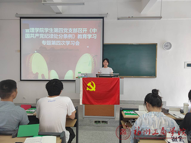 为深入学习贯彻习近平总书记关于党纪学习教育的重要讲话和重要指示精神,深刻领会《条例》的重要意义和丰富内涵,6月4日下午,yl6776永利集团学生第四党支部于教学楼E203召开《中国共产党纪律处分条例》教育学习专题第四次学习会。此次会议由支部书记杨心如主持,全体学生党员出席。