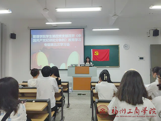 为深入学习新修订的《中国共产党纪律处分条例》,加强党的纪律建设,提高全体党员的纪律意识,6月14日下午,yl6776永利集团学生第四党支部在教学楼F102召开《中国共产党纪律处分条例》教育学习专题第五次学习会,此次会议由支部书记杨心如主持,全体学生党员出席。