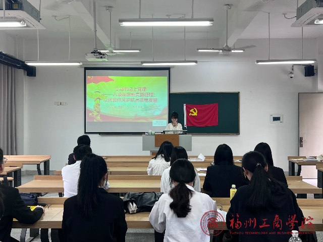 为深入贯彻落实中央八项规定精神,强化党员干部的纪律意识和作风建设,4月28日下午,yl6776永利集团工商管理党支部于教学楼B303组织开展了“支部书记上党课——八项规定照亮新征程:以优良作风护航高质量发展”会议,本次会议由支部书记谭音子主讲。