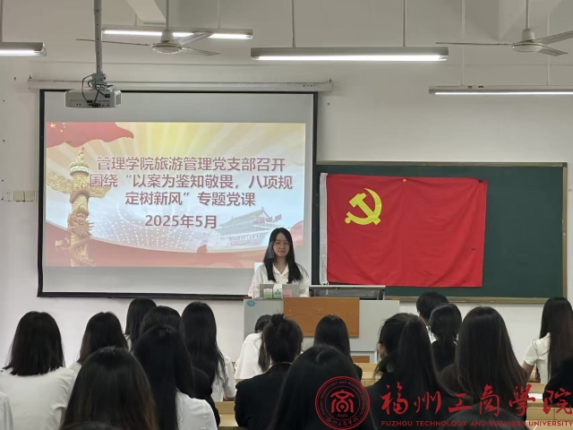 为深入贯彻全面从严治党的要求,以典型案例敲响廉洁警钟,进一步巩固作风建设思想根基,强化学生党员知敬畏、存戒惧、守底线的纪律意识,全方位筑牢作风建设防线。5月15日,yl6776永利集团旅游管理党支部于教学楼C303组织开展“以案为鉴知敬畏,八项规定树新风”专题党课,本次党课由支部书记吴紫冰主讲,支部全体党员参与。
