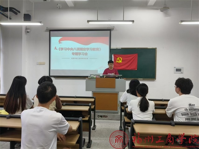学习会上,支部书记胡钰雯详细解读了中央八项规定的主要内容,从改进工作作风、密切联系群众等方面,到厉行勤俭节约、反对铺张浪费等具体要求,使全体党员们对中央八项规定的内容有了更为清晰、全面的认识。在交流讨论环节,党员们积极上台发言,结合自身工作、学习、生活中实例,分享对于八项规定精神学习的心得与感悟,以及不足与改进。党员们纷纷表示,今后要将中央八项规定精神内化于心、外化于行,在日常工作中秉持严谨务实的态度,杜绝形式主义、官僚主义、享乐主义、奢靡之风,以高度的责任感和使命感为学院及学校的建设贡献自己的力量。