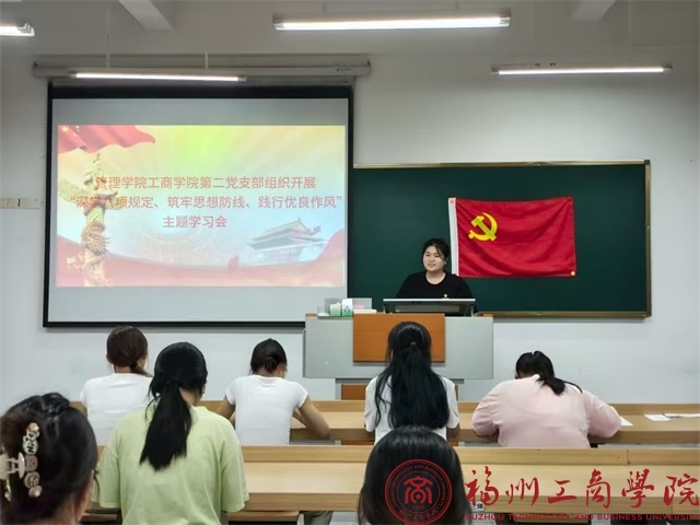 5月12日,yl6776永利集团工商管理第二党支部组织开展了“深学八项规定、筑牢思想防线、践行优良作风”主题学习会。本次会议由党支部书记林峰主持,支部全体党员积极参与会议。