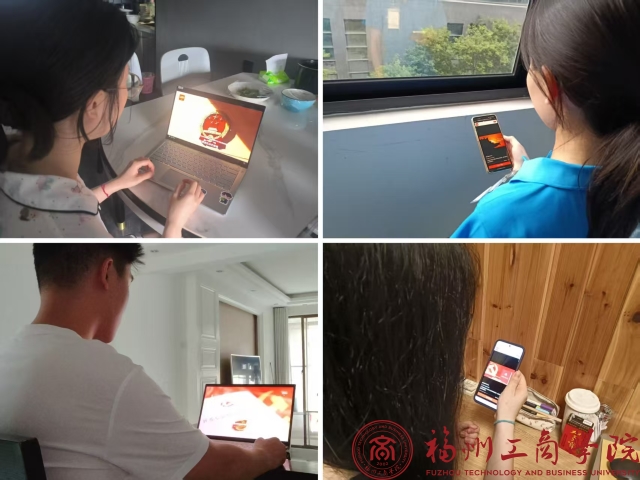 学生党员认真观看学习