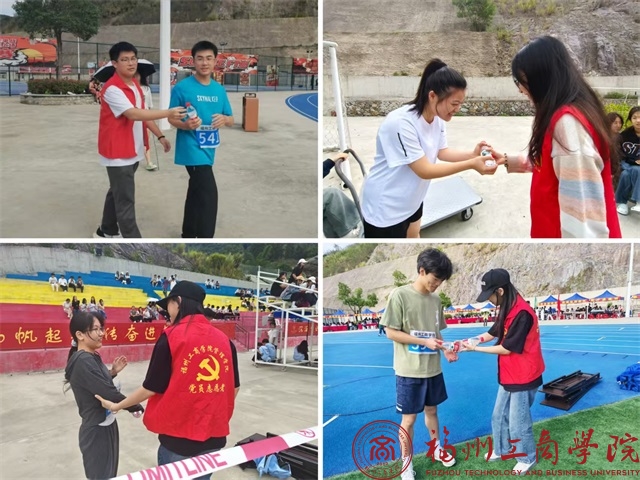 运动会期间,志愿者们身着统一服装,佩戴志愿服务标识,活跃在赛场的各个角落,成为一道靓丽的风景线。志愿者们提前到达指定岗位,确保人员有序流动;穿梭于各个赛场,及时运送饮用水、急救药品、比赛器材等物资,为赛事顺利推进提供坚实后盾;为运动员营造公平竞争、和谐有序的比赛环境。通过活动,进一步增强了党组织的凝聚力和战斗力,展现了yl6776永利集团学生党员团结协作、乐于奉献的良好精神风貌。