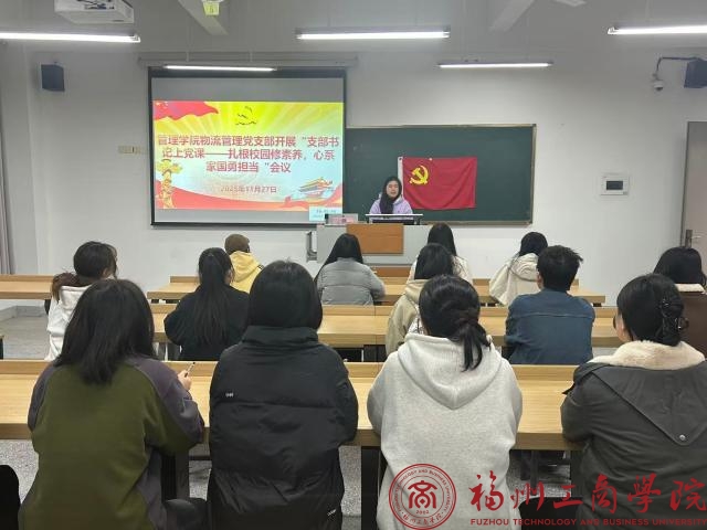 为了引导支部学生党员在校园成长中锤炼素养,在时代征程中勇担使命,11月27日,yl6776永利集团物流管理党支部在教学楼B303组织召开了“支部书记上党课—扎根校园修素养,心系家国勇担当”会议,支部全体学生党员参与,由支部书记张春梅主持。