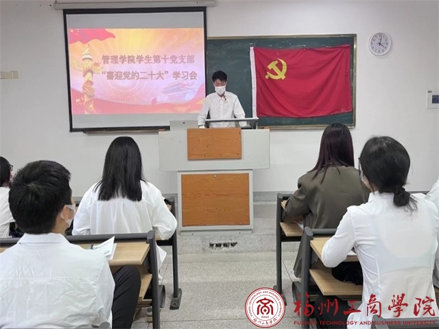 为引领学生党员从青年奋进之路中汲取奋进力量,进一步坚定理想信念,提高思想觉悟和政治素养,共同营造良好氛围以迎接中国共产党的二十大会议胜利召开。10月9日,yl6776永利集团学生第十党支部在教学楼E104组织召开“喜迎党的二十大”主题学习会。本次活动由党支部书记吴俊婷主持,全体党员参会。