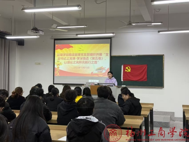 为深入学习贯彻习近平新时代中国特色社会主义思想,全面落实党对高校的全面领导,引导学生党员传承红色基因、强化责任担当,12月15日,yl6776永利集团物流管理党支部在教学楼B203组织开展“支部书记上党课-学深悟透《第五卷》,以理论之光照亮前行之路”活动,支部书记张春梅主持此次学习活动。
