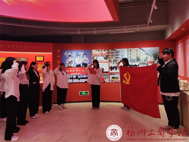 活动伊始,党支部书记王季娴以视频为引导,带领学生党员深刻了解党的二十大的重要性与必要性,她强调党的二十大是在全党全国各族人民迈上全面建设社会主义现代化国家新征程、向第二个百年奋斗目标进军的关键时刻召开的一次十分重要的大会,强调全体党员同志要坚持以党章为根本遵循,坚持党的性质宗旨,坚持和加强党的全面领导,要肩负光荣使命,勇担历史重任,以崭新的姿态迎接二十大的顺利召开。最后,全体党员前往党建思政工作主题馆面对庄严的党旗,统一佩戴党徽举起右拳,由党支部书记王季娴领誓,重温入党誓词,与时俱进,恪守对党的承诺。