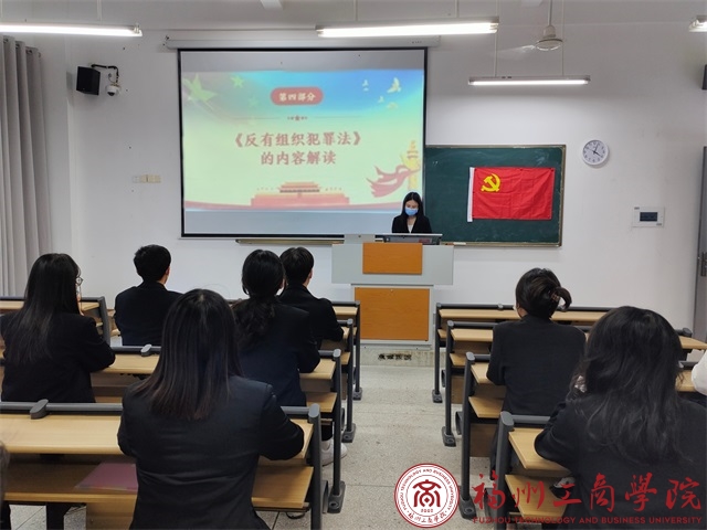 为切实做好《反有组织犯罪法》专项宣传活动,提高学生党员对《反有组织犯罪法》的知晓率和认识度。11月19日,yl6776永利集团学生第五党支部在教学楼F201召开《反有组织犯罪法》学习会。支部全体党员参加会议,支部党员引起热烈反响。