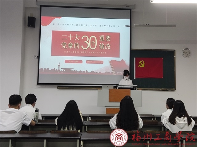 为推动党章学习教育高质量落实,促使学生党员进一步认识修正后的党章变化。11月18日,yl6776永利集团学生第七党支部在教学楼F202组织支部党员学习《中国共产党章程》。会议由组织委员童晨玲主持,支部全体党员参会。