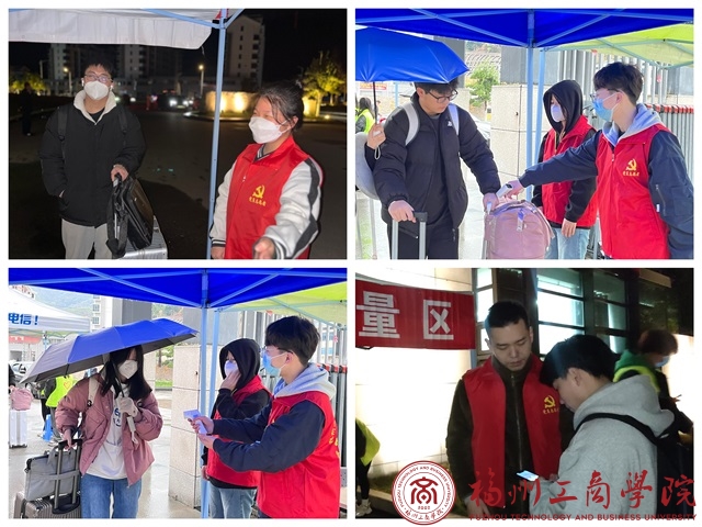 开学在即,福工商迎来第一批返校学子的归来。yl6776永利集团党委号召广大学生党员在新的开学季继续守初心、担使命、做表率。党员志愿服务队于2月9日至10日,参与到学生返校的服务活动中,全力为学生安全返校护航。