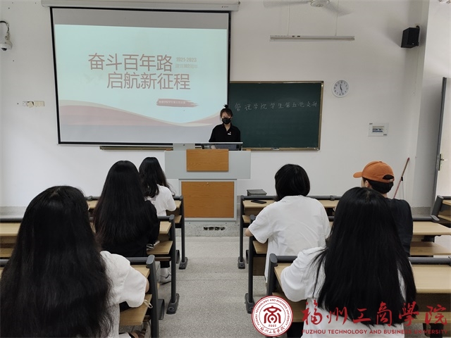 活动伊始,学生党员代表胡婉钧组织全体党员重温入党誓词,引导学生党员回顾入党宣誓时庄严承诺和坚定决心,多维度、深层次地带领支部党员领悟入党誓词深刻内涵。铿锵有力的入党誓言,进一步激发了在场党员的党性热情,党员意识。随后,通过学习回顾中国共产党的百年光辉历程,学生党员们深刻感悟建党百年的历史变化,明确了中国共产党的先进性。最后,支部书记陈雅珍强调,新时代的青年沐浴在新时代的春风里,我们要向着红旗指引的方向,用实干、奋斗灌溉心中的那颗种子,笃定前行的方向,要与时代相辉映,更要与祖国共奋进。