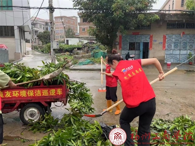 骤雨初歇,管院学生党员林莹莹积极响应锦丰村党组织的号召在锦丰村迅速开展恢复工作。林莹莹同志在锦丰村党组织的统一领导下,第一时间开展全面的灾后恢复、隐患排查等工作。劝导村民远离危房,疏散危险区域人群,并及时进行清扫、清障、运输工作,保障道路整洁畅通,以实际行动确保群众的生命财产安全。