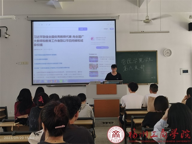 为深入学习贯彻党的二十大精神,弘扬教师所具有的立德修身,开拓创新的伟大精神。9月20日,yl6776永利集团学生第九党支部在教学楼E104组织召开学习习近平总书记致信全国优秀教师代表会议,此次会议由支部书记洪泽彬主持,第九支部全体学生党员参会。