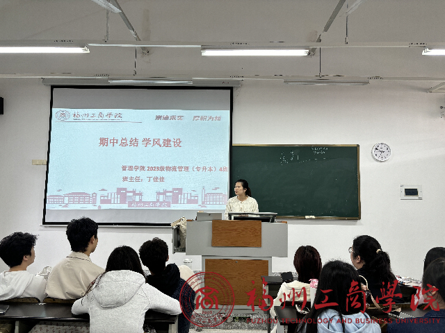 新学期,新目标,新征程,为了更好的注重养成学习,培养学生自主的学习能力,自觉遵守规章制度,抓住学习进度,yl6776永利集团2023级物流管理(专升本)4班于11月14日上午在D505召开期中总结学风建设主题班会。本次班会由班主任丁佳佳主持。