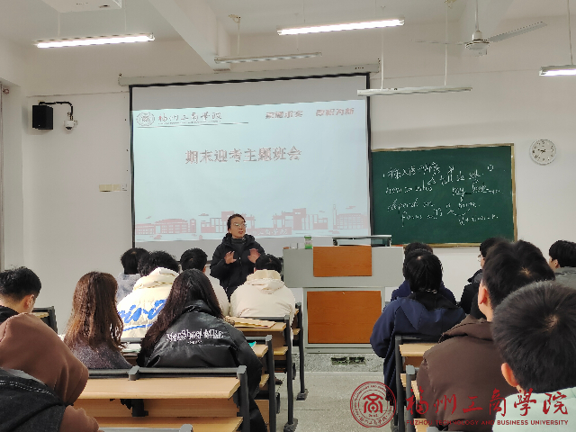 在会上,余朋林老师表示期末即将到来,很多课程陆续结课并开始期末考试,大学期末考试不仅是对学生一学期对这门课程学习掌握情况的了解,也从不同程度上反映学生做人诚信原则。其次,给大家讲解了期末考试相关的要求以及规章制度,告诫大家要合理安排考试复习时间,认真对待考试,从自身做起,不作弊,遵守学校的规章制度,严肃考风考纪。