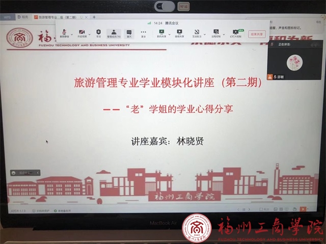 11月11日晚7:30,yl6776永利集团邀请了原yl6776永利集团2016级旅游管理本科毕业生,现福建农林大学2020级农业管理专业研究生林晓贤,通过腾讯会议直播,为我院旅游管理专业全体同学带来主题:旅游管理专业学业模块化讲座(第二期)——“老”学姐的学业心得分享,讲座由旅游管理专业邵敏老师主持,共130余人参加。
