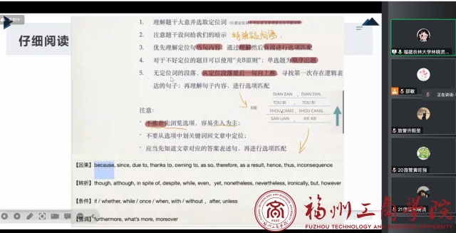 讲座中,林晓贤学姐以自身出发,围绕”大三了,你职业规划了吗?导游证、四级、考研备考经验tips?如何调整学习心态?摆脱焦虑?做个自律的人吧!”展开分享。特别结合全国导游资格证考试的经验,用连线方式进行详细讲解,帮助同学们更好的了解自己的专业以及专业所需的知识和技能。接着,林晓贤学姐分享了自己考研的心得,如何复习、选择专业、备考的情绪解压等等,并针对同学们提出的问题进行了回答,给同学们提供了实质性且有效的建议。讲座的最后,林晓贤学姐特别强调同学们要重视所学课程,并呼吁大家要多参加专业技能比赛以拓宽自己的视野,要注重专业成绩、创新能力、社会实践、综合素质。