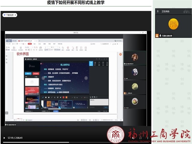 本次线上教学会议的顺利开展,不但有效缓解了家长、学生、老师的焦虑情绪,保障了学生们的学习安全,同时也使各专业教师们在各自授课专业线上教学模式的选择、线上教学设计、线上教学过程、线上线下融合方式等方面有了深入的学习,为新的教学模式积累了经验。