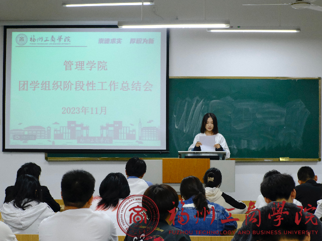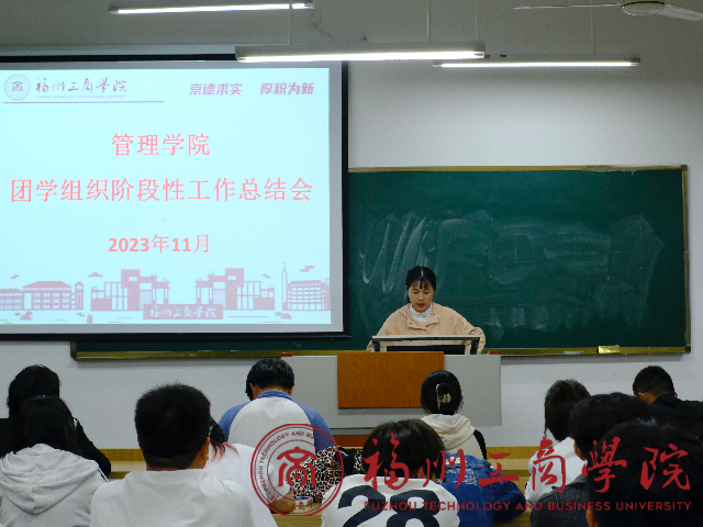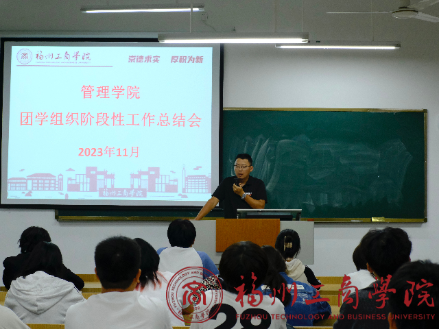 会议伊始,各部门负责人依次就这阶段团学组织工作展开了工作总结,他们汇报了本阶段的工作成果,同时对日常工作进行了回顾,深刻指出的自身建设的不足,并提出了对下阶段工作的展望。接着,由团委老师张春梅发言,她表彰了在本阶段的各项工作中表现突出的部门,并对接下来工作提出她的期望,希望各部门能够继续认真做好团学组织交给大家的各项工作,同时能创造性地开展工作,加强自身队伍建设,练就过硬本领,不负青春、不负韶华、不负时代。会议的最后,由党委书记郑杰上台祝贺各部门圆满完成了纳新工作,同时对我院本阶段工作进行了回顾总结,就进一步加强我院的干部队伍建设、制度建设等方面进行了规划。他强调各部门需要做好每个阶段的工作总结与反思,共建积极向上的部门氛围,各部门需严格遵守工作纪律,坚决维护我院党委、团委的领导指示。他还提出要积极开展活动,加强工作创新,各干部要提高大局意识和带头作用,以身作则、严于律己。