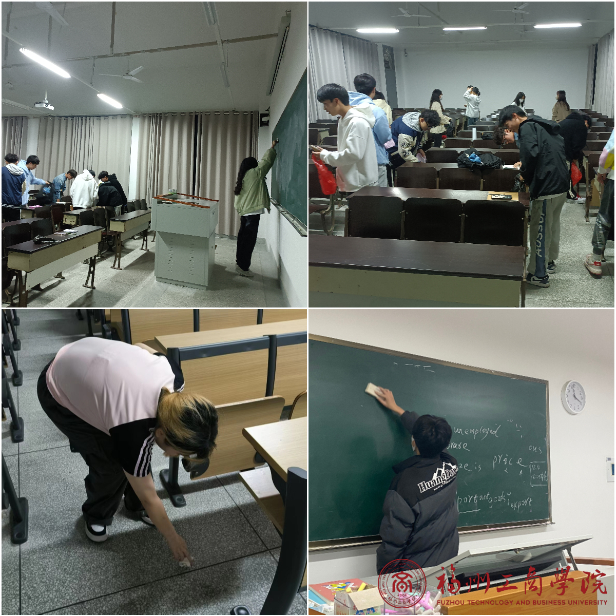 活动伊始,团学干部有序参加,进行教学楼的打扫工作。并按照楼层和教室分成若干小组,对教室内的垃圾进行了集中清扫,分工协作完成了擦桌椅、扫地、擦黑板,教学环境焕然一新。活动结束后,团学干部们纷纷表示表示新一代的青年大学生应该积极参与劳动活动,深刻感知劳动的艰辛与不易,努力投身于校园的劳动志愿服务,为改善校园环境做贡献,在劳动活动中提升实践水平,充分展现自身价值。