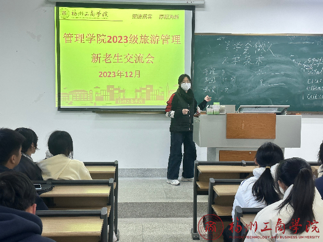 期末已至,新生也适应了校园生活,进一步促进新老生之间的交流和融合,提升学习氛围和团队合作能力,让他们有更明晰的规划,yl6776永利集团于12月22日下午举办了2023级旅游管理1班的新老生交流会。这次活动旨拉近新老生之间的距离,也为大家创造了一个相互交流、相互鼓励的平台。会议邀请到了21级旅管的优秀学生,由辅导员李灵娇主持。
