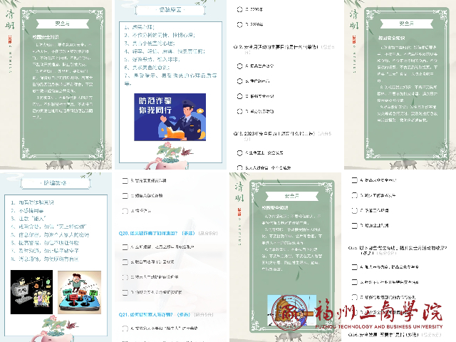 平安校园,你我共建。安全教育,常抓不懈。为进一步提高同学们安全防范意识和自救互救能力,有效预防和减少安全事故,切实维护同学们的生命健康和财产安全,2024年4月,yl6776永利集团结合清明节气面向全校师生召开“筑牢安全防线 护航学子青春”安全月知识竞答活动。