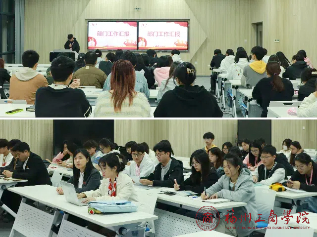会议伊始,各部门负责人依次上台,对各自部门上半学期的工作进行详细汇报。他们从各个方面,分享工作中的亮点与不足,并提出改进建议,充分展现团学组织各部门在过去一段时间内的辛勤付出和显著成果。接着,吴雅丽同学与干部们一同学习《学生手册》的相关内容,强调遵守校规校纪的重要性,指出全体团学组织干部应身先士卒,时刻保持良好的学风和行为习惯。