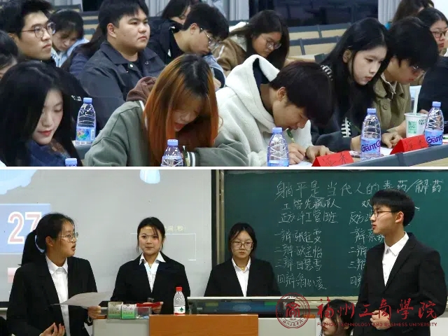 本次辩论赛的正方是来自2024级工商管理1班的四位辩手,他们的论点是“躺平是当代人的毒药”。反方是2024级旅游管理1班的四位辩手,他们的论点是“躺平是当代人的解药”。比赛伊始,正方一辩以清晰的逻辑和有力的论据阐明观点,迅速将全场气氛点燃。反方一辩也不甘示弱,反驳掷地有声,精准地指出对方漏洞。攻辩环节,双方辩手针锋相对,提问犀利,回答巧妙,你来我往间尽显思维敏捷度。自由辩论阶段更是高潮迭起,辩手们或引经据典,或结合实际案例,互不相让,将比赛气氛推向白热化。总结陈词时,正反方四辩都以出色的口才梳理全场脉络,升华己方观点,给观众留下深刻印象。经过激烈的辩论,2024级工商管理1班获得冠军,2024级旅游管理1班获得亚军。
