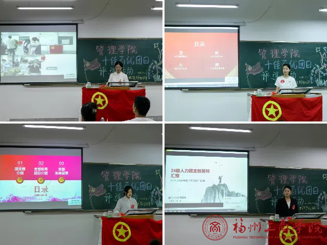 活动开场主持人宣读本次活动开场白,提到习近平总书记的重要讲话:“青年强,则国家强;当代中国青年生逢其时,施展才干的舞台无比广阔,实现梦想的前景无比光明。"并隆重介绍莅临本次活动的评委来宾,随后,全体成员一同奏唱团歌拉开了本次活动的序幕。紧接着参与评选活动的团支书们,通过精美的PPT及视频来展示各自团支部的风采,描绘未来规划。最后,通过激烈的角逐,24工管1班荣获一等奖,24人力1班、23物流1班荣获二等奖,23旅管1班、23工管1班、24物流1班荣获三等奖,24工程1班、24旅管1班获得优秀等。