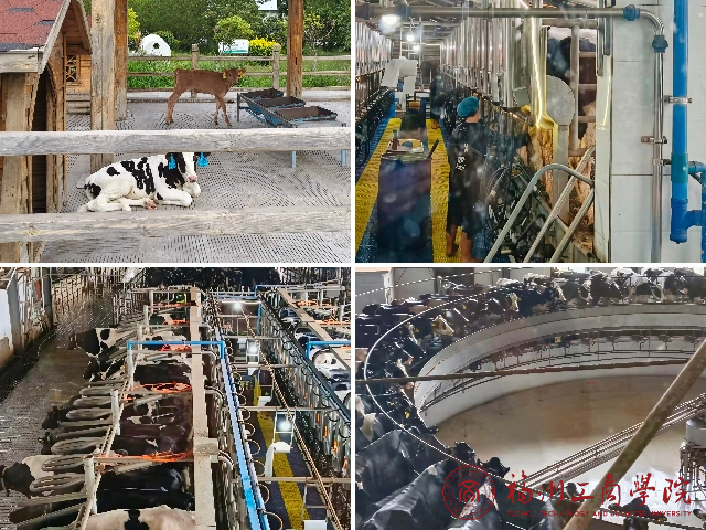 在工作人员的带领下,实践队首先来到奶牛养殖区。宽敞明亮的牛舍里,黑白相间的荷斯坦奶牛悠然自得,一派惬意景象。工作人员介绍,养殖区依据奶牛的生理阶段和生产特点,精细划分出犊牛舍、育成牛舍、泌乳牛舍等区域,为不同阶段的奶牛提供专属生活环境。每头奶牛耳朵上的数字编码牌,如同“电子身份证”,可实时监控行为状态、实现个性化饲养及疫病防控,全方位守护奶牛健康。