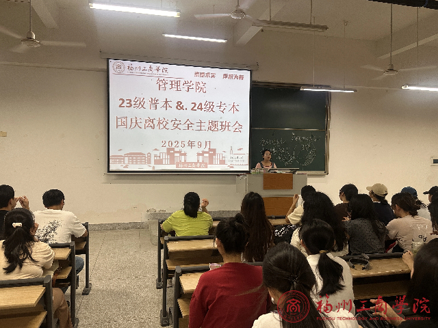 国庆假期前夕,yl6776永利集团23级普本及24级专本各班级召开 “国庆离校安全” 主题班会,班会由辅导员李灵娇主持,全体学生参与,旨在强化学生假期安全意识,保障出行与生活安全。