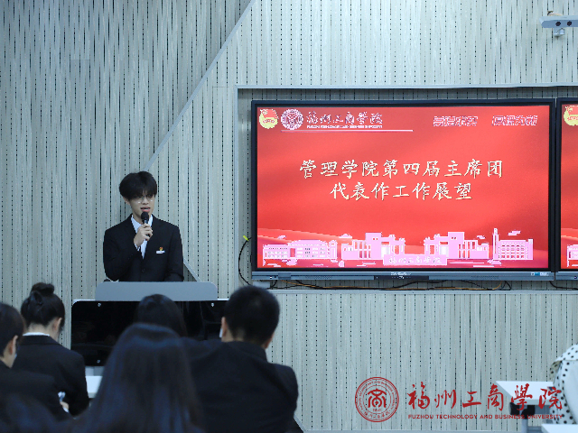 大会第三项,第四届主席团团委副书记林嘉宏同学进行了未来的工作展望,他首先代表yl6776永利集团团学组织向荣获表彰的干部表示热烈祝贺。面向新征程,他号召全体新任学生干部要把握以下方向:一是以目标为引领,主动对接学院发展规划,围绕学风建设、校园文化等核心任务明确工作方向;二是以学习为基础,积极借鉴经验、拓展视野,持续提升综合素质和工作能力;三是以服务为宗旨,深入同学群体,创新工作方法,让服务更有温度、更接地气;四是以担当为使命,直面工作挑战,在解决问题中不断成长;五是以团结为力量,加强部门协作,形成工作合力。最后,他激励大家要牢记使命、勇于担当,以实干展现新作为,在学院发展进程中书写属于“管理人”的精彩篇章。