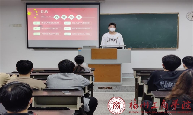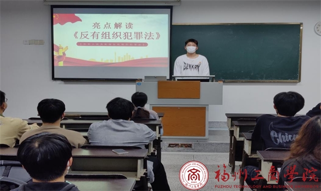 为进一步提高《反有组织犯罪法》的普及率,增强同学们对扫黑除恶工作的认识和参与度,增强同学们运用法律与黑恶势力作斗争的信心和能力。2022级物流管理2班于11月15日在F201教室开展了《反有组织犯罪法》主题班会活动。