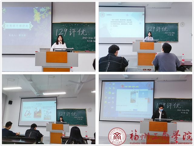 本次“一二.九”评优共评选“三好学生”“优秀学生干部”和“社会工作先进个人”等荣誉称号。评选会议中,经过班级评议小组遴选后的候选人按先后顺序上台,用演讲、PPT、视频等多种方式展现自己,旨在得到同班同学们的支持,有些候选人因疫情居家隔离无法到达现场,但仍采用云竞选方式,通过QQ语音通讯功能演讲。上台的候选人展现结束后,其他同学对自己心仪的候选人投出自己宝贵的一票,最后根据票数的高低和班级所分到的荣誉名额,评选出最终的荣誉获得者。
