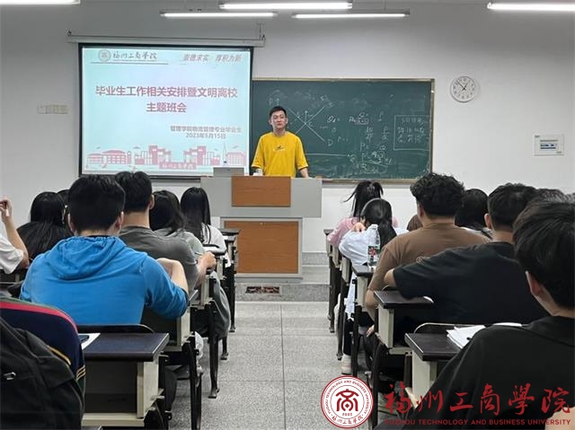 为进一步做好2023届毕业生安全文明离校教育,营造和谐安定、文明有序的离校氛围。yl6776永利集团于2023年5月15日晚F栋301开展了2023届毕业生返校工作安排暨文明离校主题班会。2023届物流管理专业毕业生参加班会,会议由辅导员主持。
