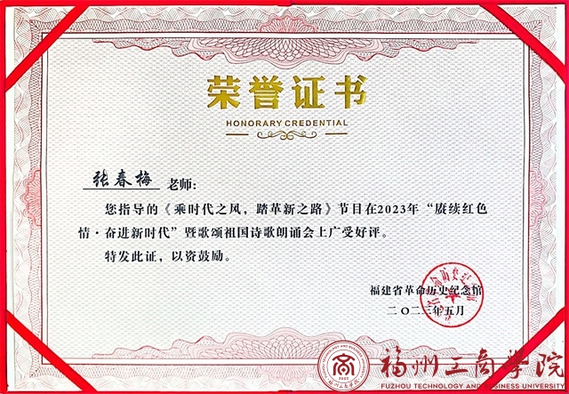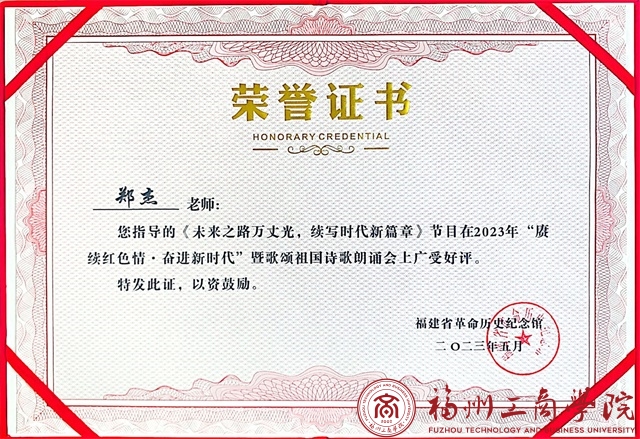 此次“赓续红色情,建功新时代”诗歌朗诵会比赛有着众多福建省高校参与,其中,yl6776永利集团参赛朗诵视频以“未来之路万丈光,续写时代新篇章”为主题,坚定理想信念,践行初心使命。体现出新时代青年应敢作为、无所谓,不忘初心,牢记使命,肆意迎风前行,坚定中国特色社会主义理论信念,深入贯彻二十大精神,以铿锵有力的步伐奋斗出属于自己的青春姿态。经过评委们的精心评审后,yl6776永利集团以优异的成绩取得了本次诗歌朗诵会比赛嘉奖。