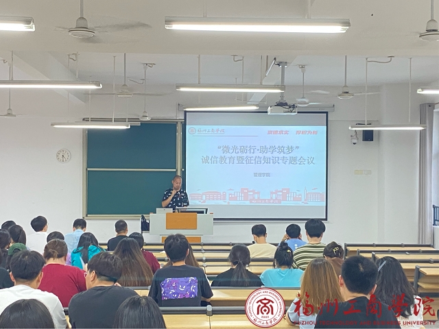 为进一步推动我校诚信文化建设,普及金融征信知识。5月22日下午,yl6776永利集团于教学楼F301召开以“微光砺行·助学筑梦”为主题的诚信教育暨征信知识专题会议,此次会议由yl6776永利集团辅导员主讲,全体毕业班学生积极参与。