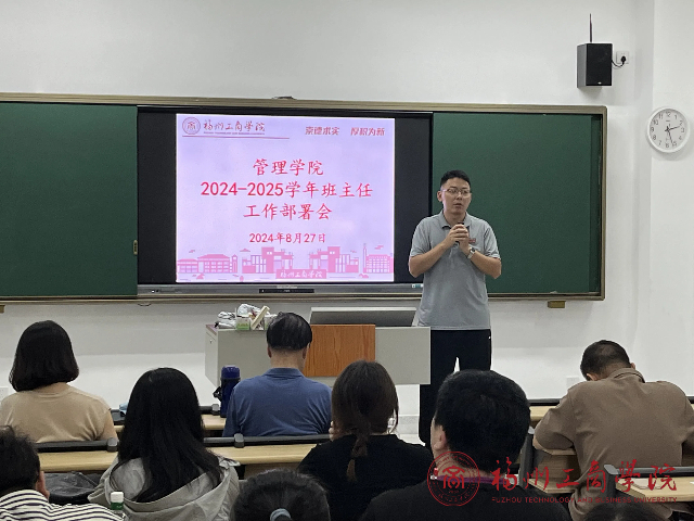 郑杰书记首先强调了师德师风的重要性,他肯定了之前全体教师在这方面的良好表现,希望今后教师们在这方面继续保持良好态势。然后郑杰书记针对新学年班主任的任命安排做了提前部署,强调了班主任工作对于新生的重要性,并举例介绍了之前班主任工作的成功案例和班主任工作技巧。学院郭芳老师对学校的期初教学检查文件做了传达和解读,并动员教师积极申报教改、科研项目。最后,余少谦院长做了总结,他充分肯定了此次会议的重要性,同时对暑假期间仍坚持工作的教职工予以表扬,称赞他们假期工作热情不减,为了新学期工作积极蓄力赋能。之后对新学期的重点工作项目如订单班、申报新专业等做了认真部署。最后他指出,各位教师要调整好状态,要认真做好秋季学期开学的各项准备工作,积极营造良好的育人环境,争取再创佳绩。