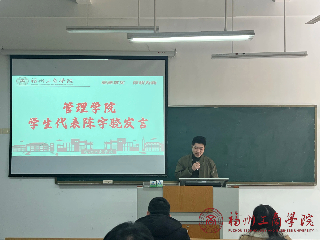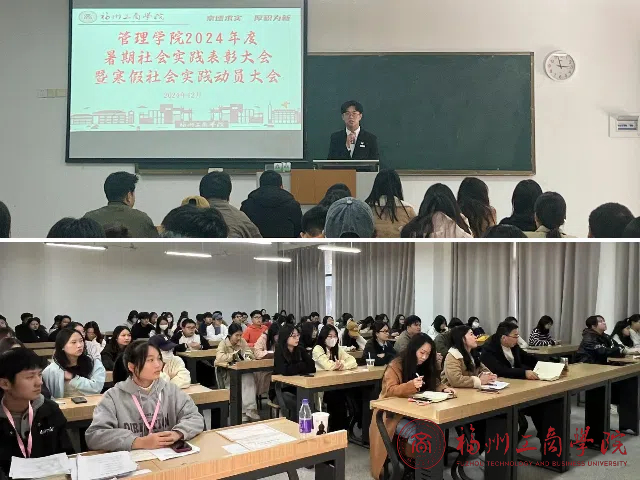会议伊始,由实践部部长吴思杰对2024年度暑期社会实践完成情况进行总结汇报,大会通过照片回顾了学生暑期实践成果,让参会人员领会了暑期社会实践的汗水与喜悦,感受管院学子深入实践、走向基层、接触社会、的激情和风采。随后,团委书记张春梅老师宣读2024年度暑期三下乡社会实践的先进个人、团队获奖名单,并对他们表示热烈的祝贺。与会领导、老师为暑期社会实践获奖成员颁奖。优秀社会实践代表陈宇骁上台发言。他回顾队参与社会实践的经历,表示将理论武装、勤于实践,担负起当代青年的责任与使命。 紧接着,大会对寒假实践活动进行了详细部署。学院鼓励学生挖掘家乡传统文化,积极参与公益服务,关爱孤寡老人等行动,在实践中提升社会责任感和使命感。同时,学院也着重强调了实践安全问题。