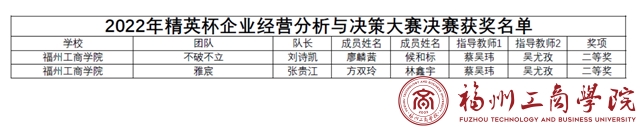 2022年“精英杯”企业经营分析与决策大赛暨“百团大战”于2022年8月1日开赛,经过初赛、决赛、百团精英赛,共有报名队伍共421支,覆盖27个省市自治区,108所院校,最终303支队伍晋级决赛,决赛于8月21日进行。我校派出由蔡吴玮、吴尤孜两位指导老师带领的刘诗凯、廖麟茜、侯和标等六位同学出赛,最终获得了两个二等奖的成绩。